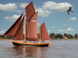 Luftaufnahme der Halbinsel Bliesenrade. Der Pfeil zeigt unsere Ferienwohnungen
